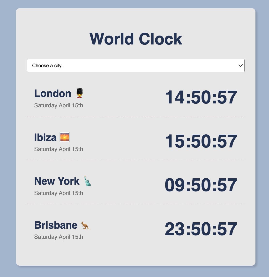 Try it out here!Check your watch accuracy and use the drop down to find your local time! While building this clock I saw the potential of advanced Javascript, only scratching the surface of possibilities. I'm looking forward to exploring new projects and challenging myself to learning new features.